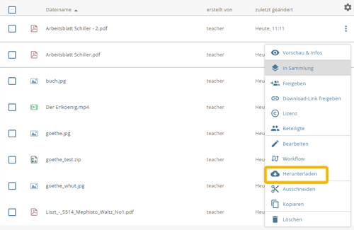 Sie werden in die Einzelansicht des Objektes weitergeleitet. Im oberen Bereich der Einzelansicht finden Sie die Schaltfläche "Download" zum Herunterladen des Objekts.