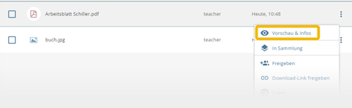 "Vorschau & Infos" im Kontexmenü
