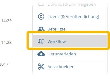 Wählen Sie die Option "Workflow" im Kontextmenü des Objektes.