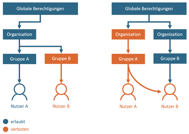 Vergabe der Berechtigungen für Organisationen, Gruppen und Nutzer