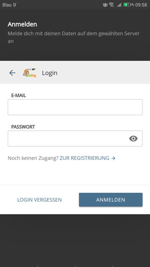 Hierfür müssen die Nutzerdaten und die URL des Repositoriums im Startbildschirm der App eingetragen werden.