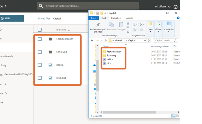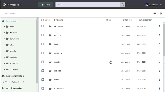 Sie finden den Bereich unter dem Ordner-Namen "shared content". Die Navigation funktioniert genau so, wie Sie es von Ihrem Windows Explorer oder Mac Finder gewohnt sind.