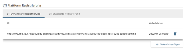 Hier finden Sie unter dem Reiter "Remote-Systeme..." den Bereich "LTI Plattform Registrierung".