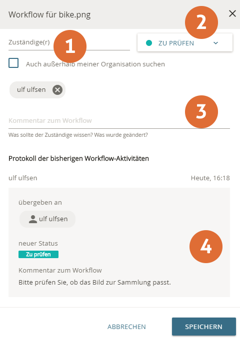 Die edu-sharing Workflows nutzen die Attribute "Zuständiger" und "Status" zur Abbildung von Prozessen.