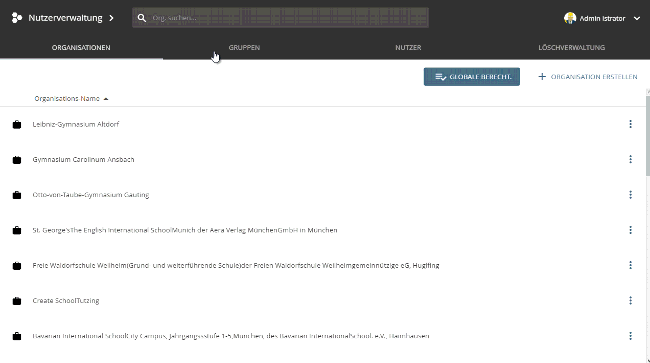 - Wählen Sie eine Organisation aus, die den gewünschten Nutzer enthält. (System Administratoren können diesen Schritt überspringen)