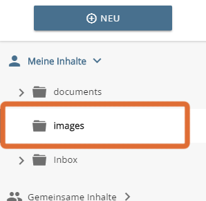 Der Inhalts-Bereich springt in den Ursprungsordner des gewählten Objektes. Stammte das Objekt aus dem Bereich „Meine Inhalte", wird der Ursprungsordner auch im Navigations-Bereich aufgeklappt und markiert.