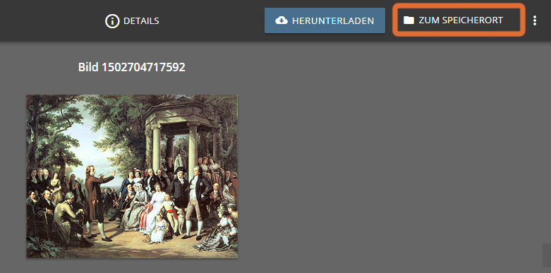 Sie werden in die Einzelansicht weitergeleitet. Hier finden Sie die Schaltfläche "ZUM SPEICHERORT".