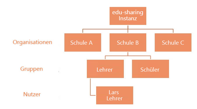 edu-sharing verwendet ein dreistufiges System zur Verwaltung von Benutzern.