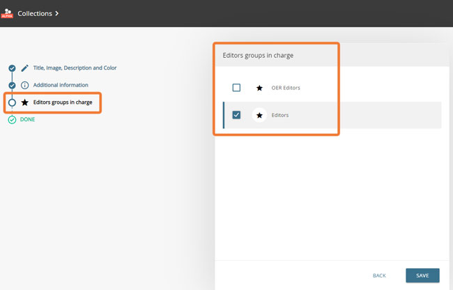 The selection of the responsible editorial groups is the last step in the creation of an editorial collection.