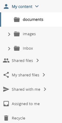 - shared content - this section shows folders that have been created by an administrator for group collaboration. This area works like a shared network drive. You can use the shared folders to create a folder structure corresponding to your organisational structure.