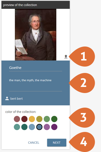In order to make the collection more personal, a background color can be picked here.- Once all settings have been carried out, you can use the "NEXT" button to save the collection's visibility settings.
