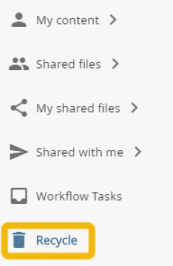 Open the recycle bin by clicking the corresponding node in the navigation area.