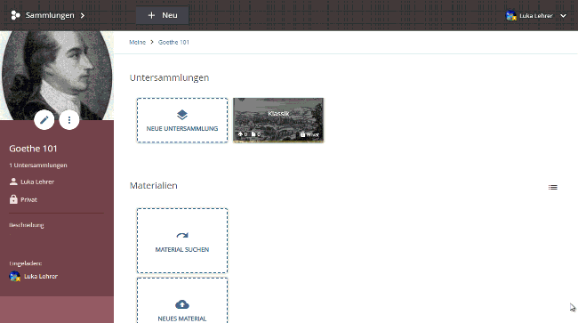 - Private collections are shared by editing them. In edit mode, you get access to the "Shares" view.