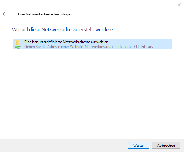 Sélectionnez l'option "Une adresse réseau personnalisée..." et cliquez sur "Suivant".