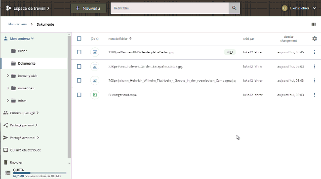 L'insertion des objets fonctionne de la même manière que pour un objet unique. Naviguez jusqu'au dossier de destination et cliquez sur le bouton "COLLER" en haut à droite de la zone de contenu.