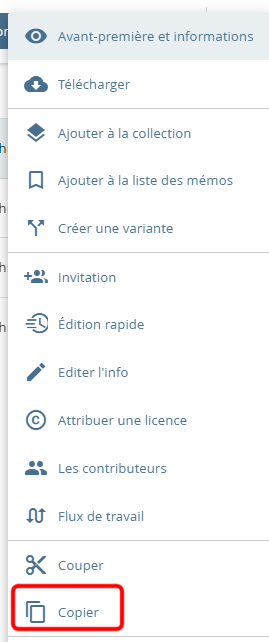 Menu déroulant avec l'option "Copier ".