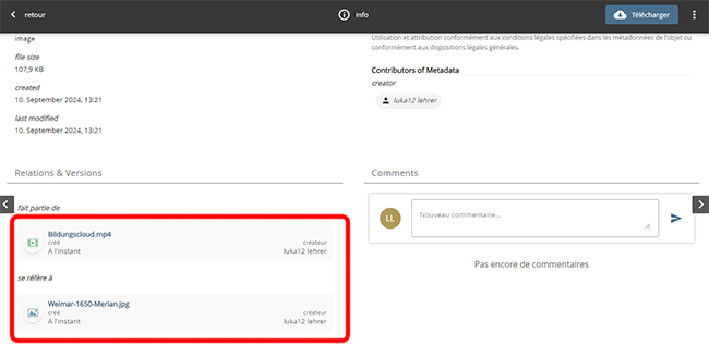 Depuis la version 8.0, edu-sharing offre la possibilité de mettre des contenus en relation les uns avec les autres.