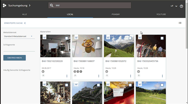 Le moteur de recherche edu-sharing offre les fonctions les plus étendues. L'utilisateur dispose ici de fonctions de recherche avancées. La recherche edu-sharing peut par exemple être intégrée dans le site web des organisation utilisatrices en tant que recherche publique OER.