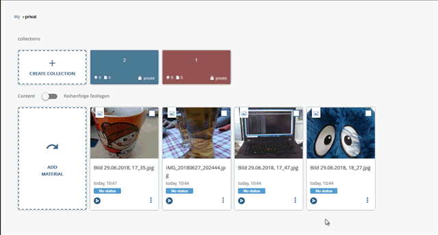 Les images d'aperçu des contenus de la collection commencent à « tanguer ». Vous pouvez maintenant ajuster l'ordre par simple glisser-déposer.