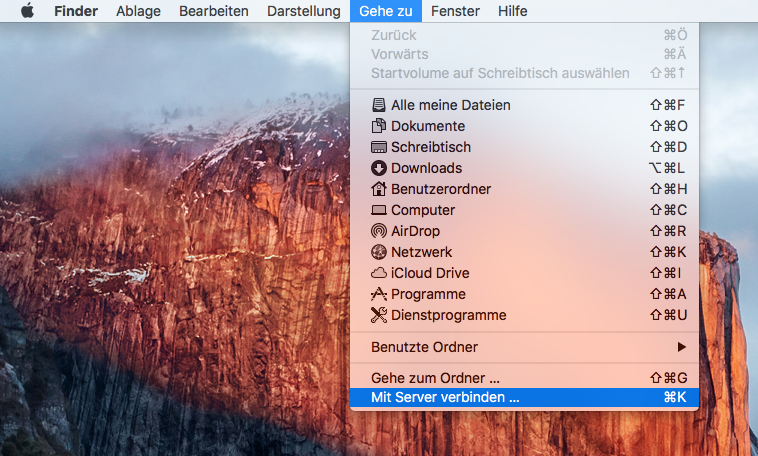 Dans le Finder, cliquez sur Aller, puis sur Se connecter au serveur.