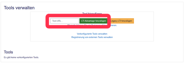 Fügen Sie die URL aus Ihrer Zwischenablage in das entsprechende Feld ein und klicken Sie auf "LTI-Advantage hinzufügen".