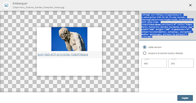A l'aide du bouton « Copier », copier le code HTML dans le presse-papiers.