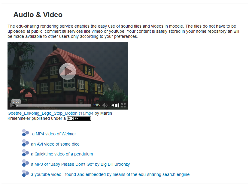 Le plug-in edu-sharing pour Moodle permet d'utiliser des objets du répertoire edu-sharing dans les cours Moodle.